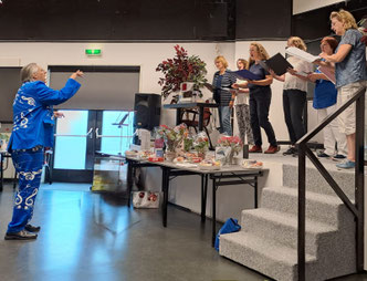De zomervakantie is weer achter de rug en de WASBO begon deze middag met koffie en thee en een gezellig gebakje. Zoals beloofd was er deze middag weer muziek. Vandaag kwam een koor uit Loosduinen PLUK genaamd. Zij brachten een muziekprogramma met zowel Engelse als Nederlandse liedjes die bij onze leden goed in de smaak vielen. Tijdens de pauze kwam Soraya Sip van Fit in Wassenaar iets vertellen over VALPREVENTIE. Er is een gratis valpreventiecursus die aangeboden wordt vanuit de gemeente Wassenaar voor mensen boven de 65 jaar. Na de pauze met een drankje en wat lekkers kwam PLUK weer in actie gevolgd door de loterij en de bingo. Het was weer een geslaagde middag en iedereen ging weer vrolijk huiswaarts. De volgende middag is 13 oktober 2025